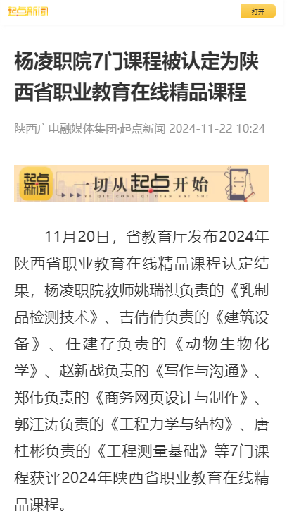 【起点新闻】杨凌职院7门课程被认定为陕西省职业教育在线精品课程