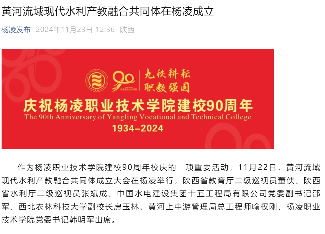 【杨凌发布】黄河流域现代水利产教融合共同体在杨凌成立