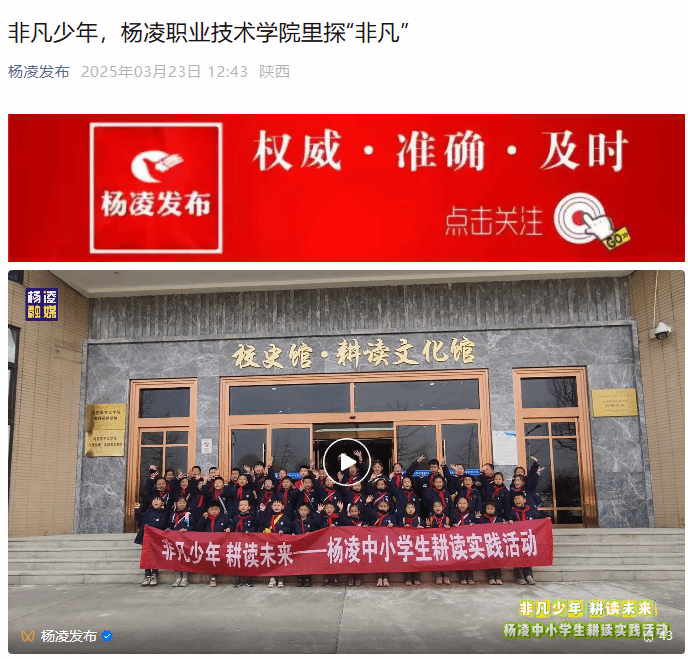 3月22日一大早,杨凌高新小学二年级三班的40多名同学们走进杨凌职业技术学院,参与“非凡少年 耕读未来”杨凌中小学生耕读实践活动。通过沉浸式参观、动手实践与团队协作,孩子们在行走的课堂中感受传统农耕文化与现代科技的融合,这场"耕读启智"的主题实践活动让他们收获了知识与成长的喜悦。