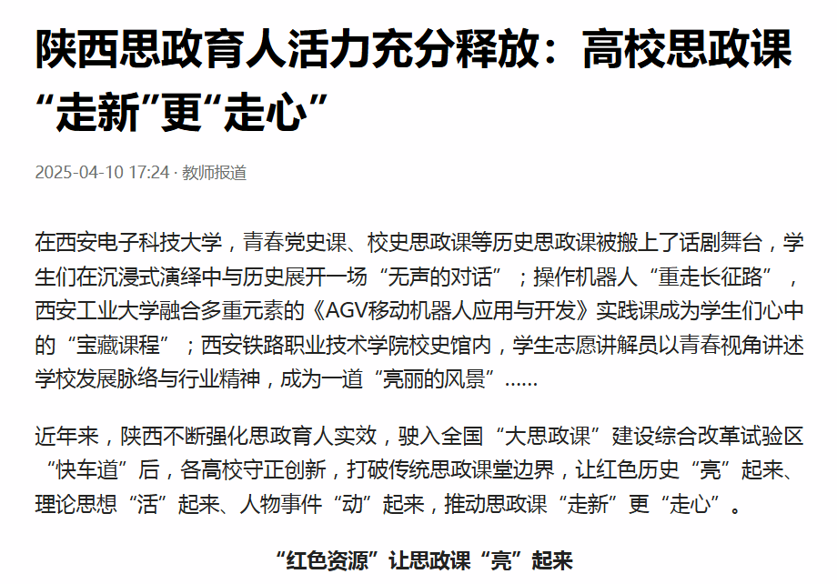 【教师报】陕西思政育人活力充分释放:高校思政课“走新”更“走心”