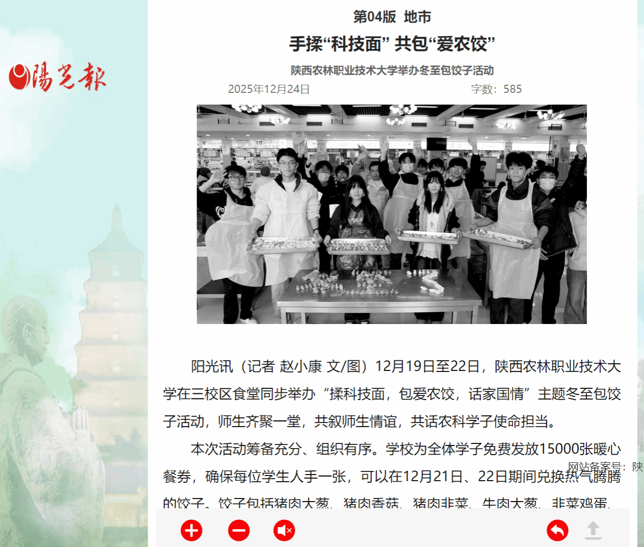 【阳光报】手揉“科技面” 共包“爱农饺” 陕西农林职业技术大学举办冬至包饺子活动