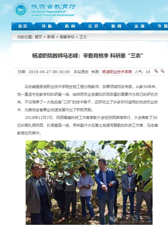 【陕西省教育厅】杨凌职院教师马志峰:辛勤育桃李 科研惠“三农”
