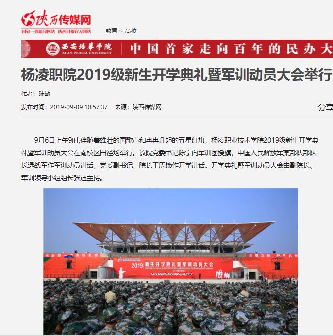 9月6日上午9时,伴随着雄壮的国歌声和冉冉升起的五星红旗,杨凌职业技术学院2019级新生开学典礼暨军训动员大会在南校区田径场举行。该院党委书记陈宁向军训团授旗,中国人民解放军某部队部队长逯战军作军训动员讲话,党委副书记、院长王周锁作开学讲话。开学典礼暨军训动员大会由副院长、军训领导小组组长张迪主持。