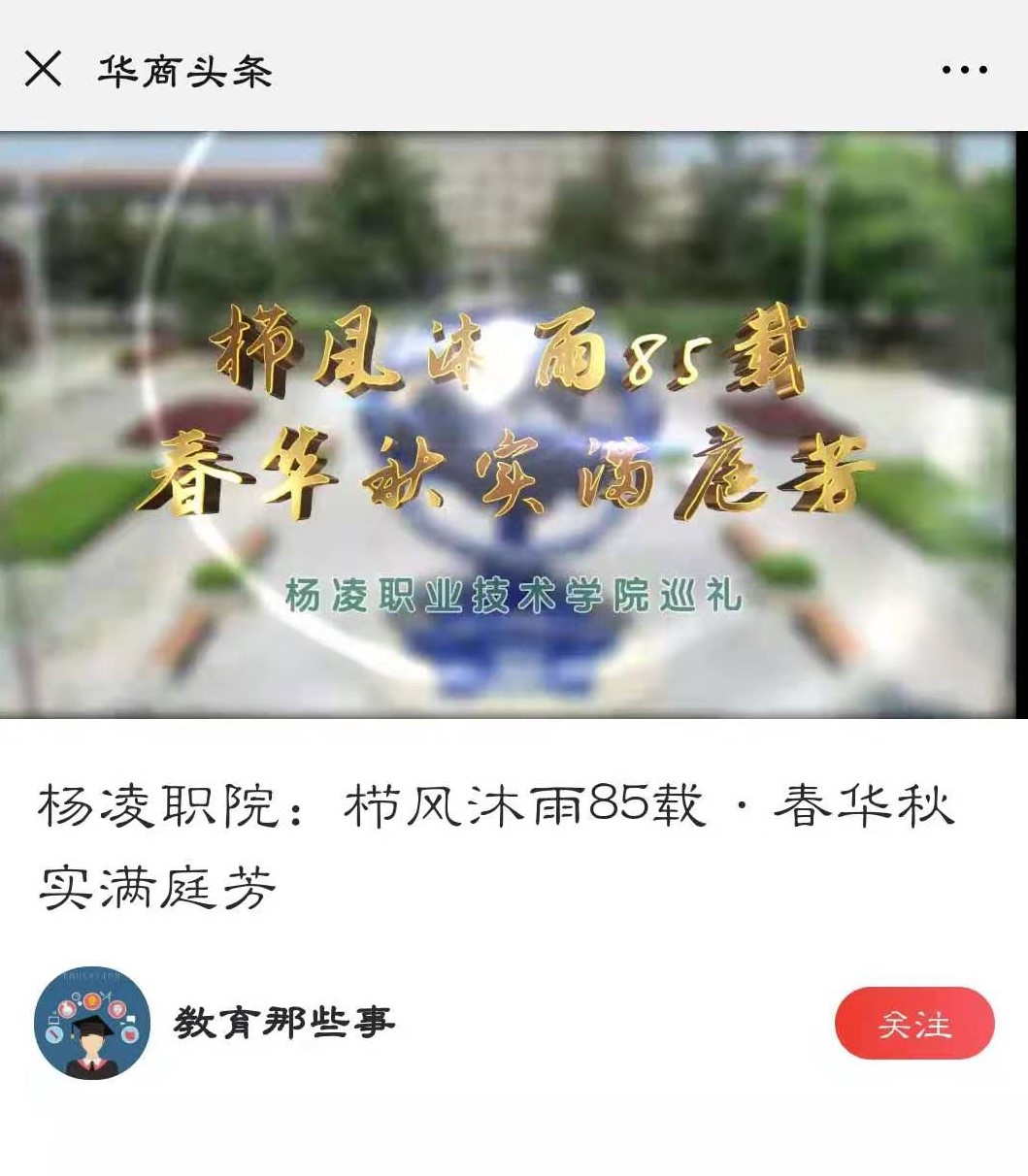 【华商头条】杨凌职院:栉风沐雨85载·春华秋实满庭芳