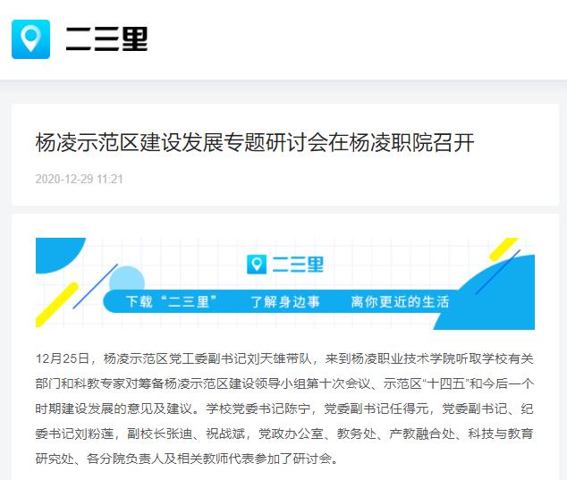 【二三里】杨凌示范区建设发展专题研讨会在杨凌职院召开