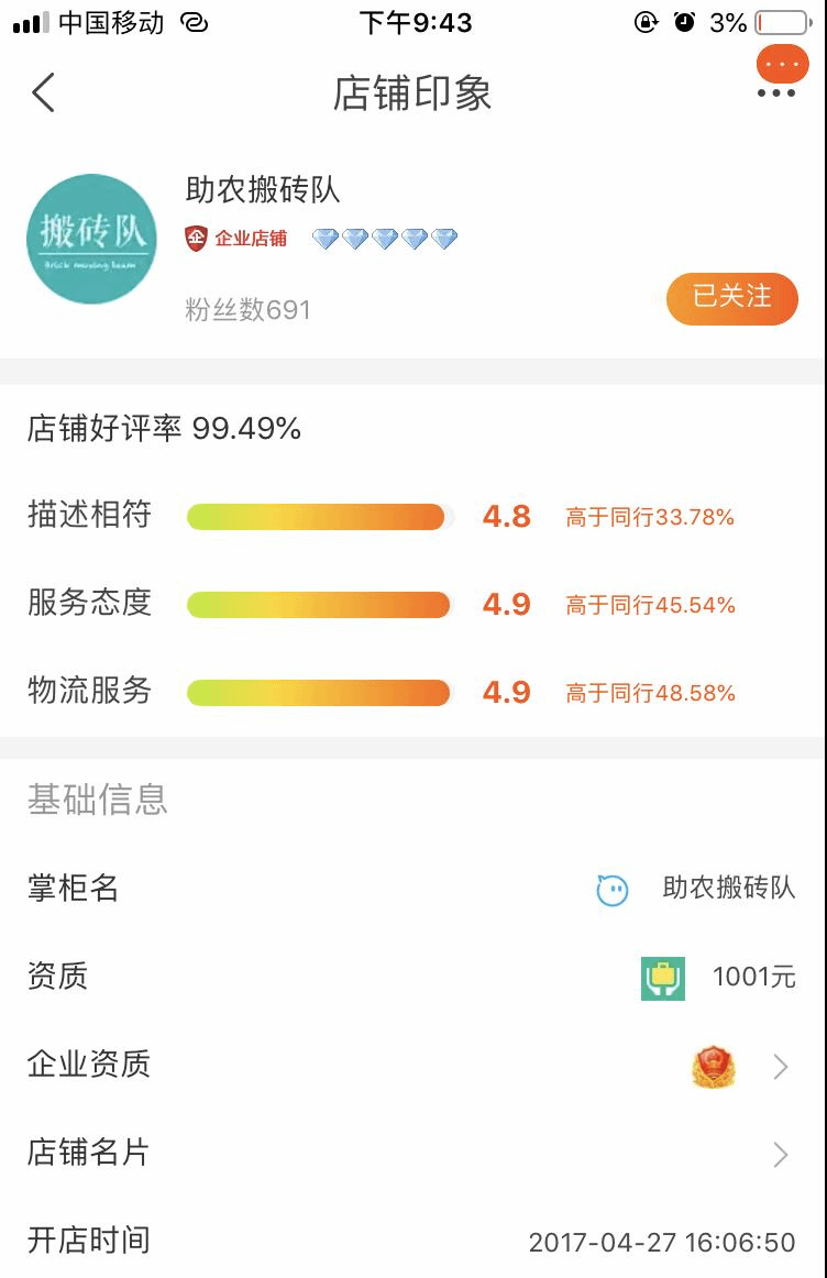 在销售方面,公司除了利用自运营的12个电商平台进行销售外,还与央广商城、中粮健康生活等200余家知名电商品牌签定分销协议,全网发力打通网上销售渠道,特别是公司自营的助农搬砖队淘宝店,3年来奶油南瓜销量一直排名第一,好评率高达99.49%。在品牌打造方面,创新设计了2款奶油南瓜包装,注册喜食攻略商标全网示范推广。通过这一系列的举措,公司实现了年均销售奶油南瓜40万斤,销售额300余万元,成为了奶油南瓜电商销售领域内的翘楚。