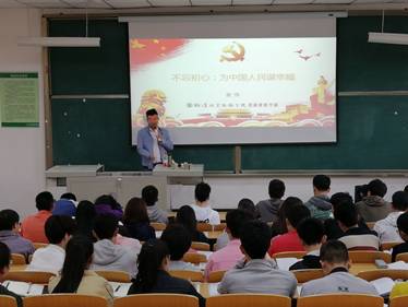本次党课的内容有:“不忘初心,为中国人们谋幸福”和“正风肃纪,不断厚植党执政的群众基础”。在课上张伟老师回顾了党光荣的艰辛岁月,让广大学生党员感悟今天生活的幸福,鞭策大学生努力学习奋斗,增强大学生的爱国热情和振兴祖国的责任感和使命感,他的一言一行,对一个入党积极分子的发展都起到了无可比拟的导向作用。