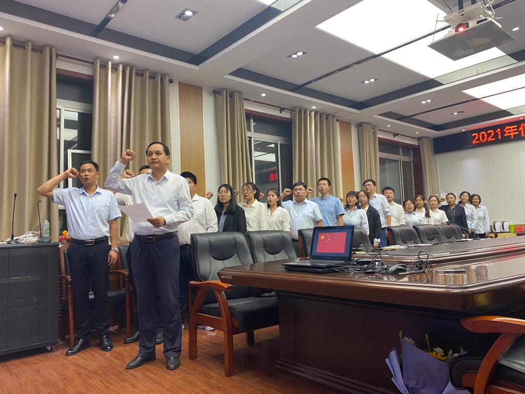 最后,在陈高锋副院长的带领下,所有教师面向国旗,重温人民教师誓词。