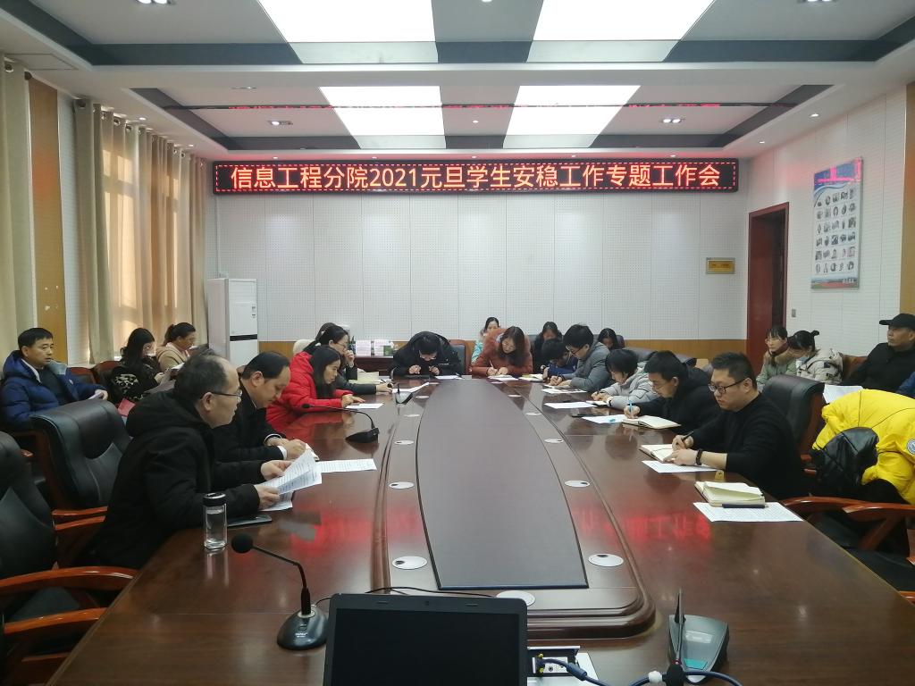 为做好年底、期末各项学生工作,保证学生安全,结合当前疫情复杂多变的形式,信息工程分院召开了2020元旦学生安稳工作专题工作会。