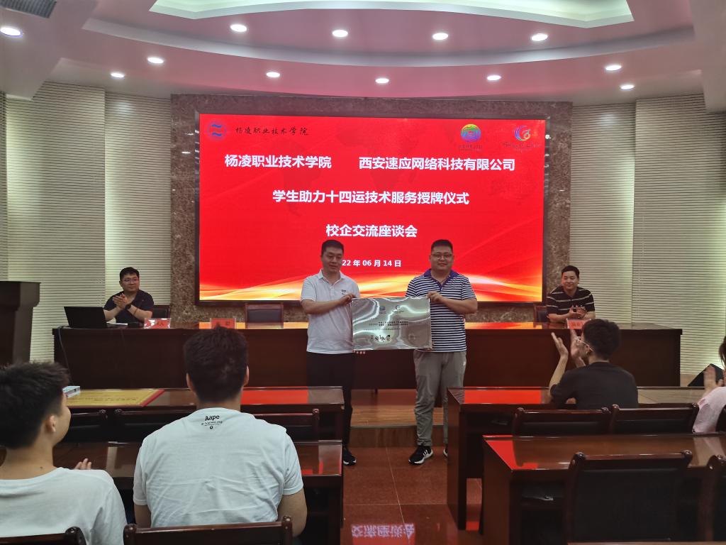 随后,西安速应网络科技有限总监张涛向我院学生分享企业工作的相关内容,鼓励我院学生努力学好本专业相关技能,对于以后的工作有很大的帮助。信息工程分院网络教研室任朝辉作为教师代表接受牌匾。
