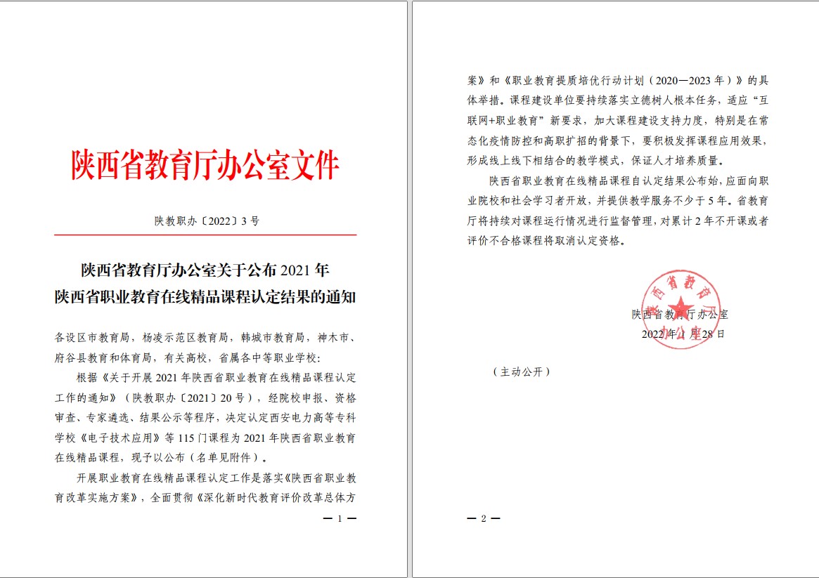 2022年1月28日,陕西省教育厅发布2021年陕西省职业教育在线精品课程认定结果,我院刘维嘉副教授负责的《计算机组装与维护》课程获评2021年陕西省职业教育在线精品课程,实现了我院省级精品在线开放课程零的突破。
